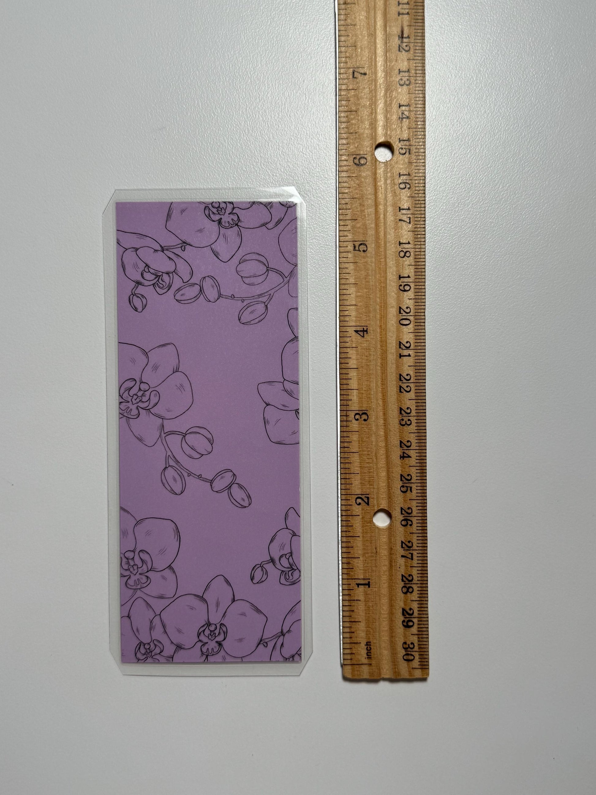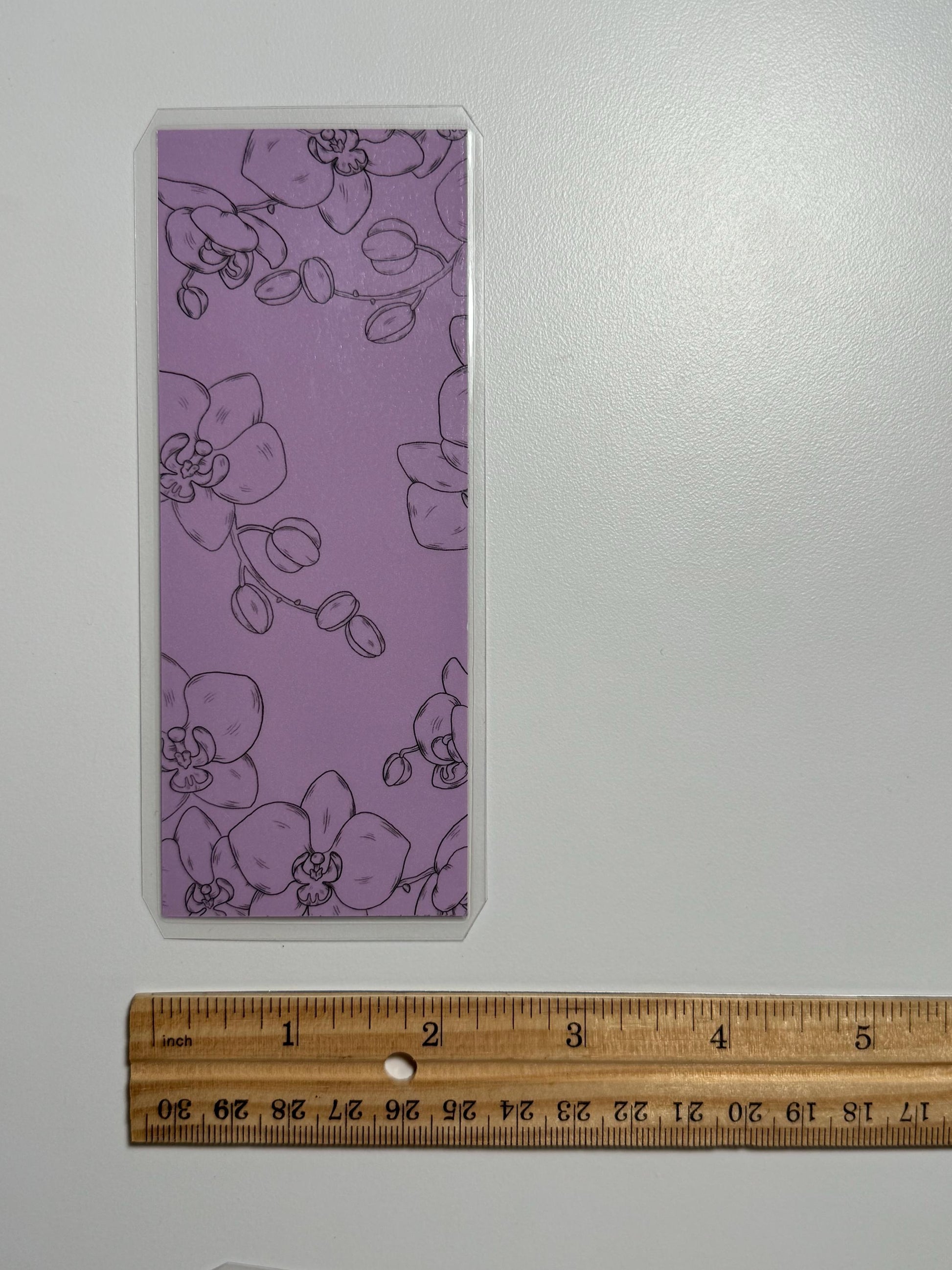 Laminated Handmade bookmark with an orchid design